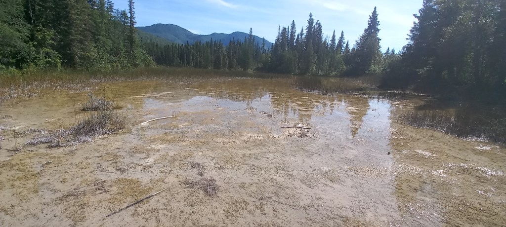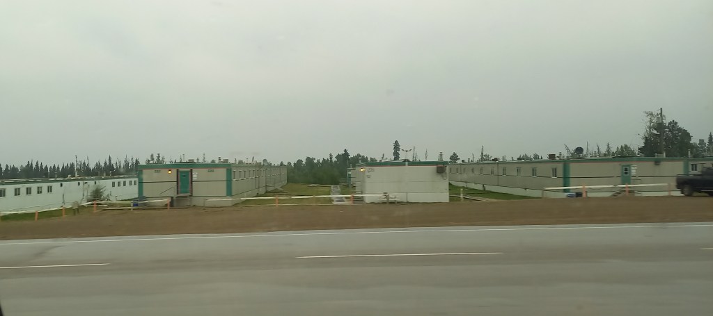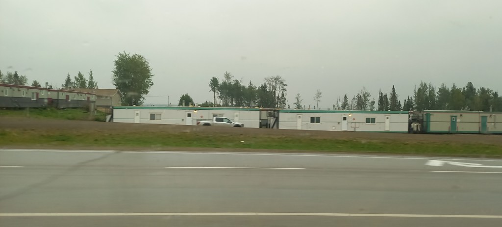 Avui hem dormit a Summit Lake, al costat del llac. En Dani vol fer la ruta de la muntanya del davant, rocosa i pelada. El “Summit peak”. Quan veig el mapa de les corbes de nivell se’m posen els pèls de punta! Les 9 hores que els cartells informatius imputen a la ruta el fan canviar d’opinió. No tenim tant de temps per dedicar a l’excursió. Fem l’excursió “Flower Spring Lake”, “Llac de la flor de primavera”. Com el seu nom indica, és un passeig molt agradable fins a un llac enmig de la tundra, travessant el bosc boreal. Albirem un “moose” i el primer caribú! És un goig poder gaudir d’aquests paisatges sense treure el fetge per la boca.Ara que ja hem estirat prou les cames, toca una tirada llarga en cotxe fins a la pròxima parada. Una “moose” i la seva cria pasturen al costat de l’Alaska Highway com aquell qui res. Tenim la sort de poder parar i observar-les una bona estona.Continuem fent camí per l’Alaska Highway. No sabem ben bé quan, desapareixen les caravanes i les autocaravanes i ens quedem sols a la carretera durant més de 200 quilòmetres. No hi ha pobles ni càmpings ni punts turístics per a visitar. Trobem una única benzinera al cap de 170 quilòmetres. No tenim cobertura de telefonia mòbil des d’ahir. Aquesta zona de British Columbia està molt menys freqüentada que la part del Yukon que hem visitat. Parem a Pink Mountain, en un punt de l’Alaska Highway entre Watson Lake (a l’extrem nord de la província) i Dawson Creek (a l’extrem est). Parem aquí perquè és l’únic lloc on podem acampar en molts quilòmetres. A més hi ha benzinera i restaurant. No hi ha pobles. Ni tan sols cases aïllades. El lloc és ben autèntic. El que ens até al taulell de recepció del càmping (que és també el dependent de la botiga i de la benzinera) xerra pels colzes. En un tres i no res ens assabentem que estem en zona de petroli, que hi ha centenars de treballadors de la petroliera instal·lats a la zona i que sols en els seus terrenys té un campament d’uns 400 treballadors i un altre d’uns 300 treballadors més. Flipem amb tot plegat! Mentre el personatge ens posa al corrent de l’activitat econòmica de la zona i de la seva demografia, va atenent els clients que s’han acumulat fent cua darrere nostre. Van tots amb roba de treball, amb bótes cobertes de fang i amb un o dos packs de cervesa a la mà. Està clar que venen de l’estació petroliera. També està clar a on van: als barracons instal·lats per desenes que hem vist a la vora de la carretera i que anomenen “casa” mentre estiguin treballant aquí “dalt”.El càmping deixa bastant a desitjar. Després dels llocs idíl·lics on hem estat acampant aquestes últimes nits, aquest se’ns fa sense encant. És tan sòrdid que té el seu punt interessant. El millor del lloc és el restaurant, on mengem la típica hamburguesa amb patates. El pub també és tot un descobriment. Sembla un decorat d’alguna pel·lícula de l’oest. Malgrat que l’Ona no pot entrar, en Dani i jo ens hi apalanquem una bona estona per aprofitar el wifi i posar-nos al dia del blog i els contactes amb “l’exterior”. Estem pràcticament sols al bar. El lloc és ben remot.