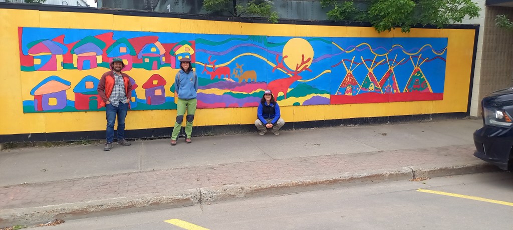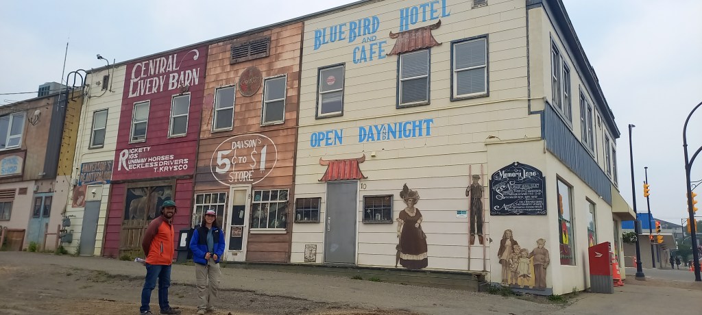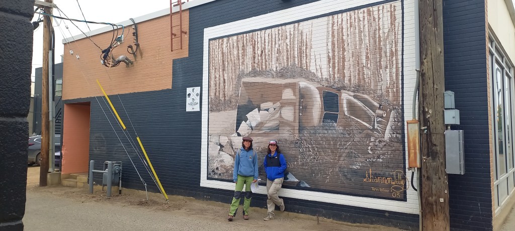 Arribem a la milla zero de l’Alaska Highway, a Dawson Creek, un dels nuclis habitats relativament grans. La primera idea és passar de llarg i continuar fent quilòmetres cap a Calgary, però la guia ens recomana visitar la ciutat tot fent un “agradable passeig a peu pels carrers del centre” i veure “edificis històrics”. De la informació de la guia sobre Dawson Creek ens quedem amb dues dades: recomana un circuit a peu i parla d’edificis històrics en plural, és a dir, que n’hi ha més d’un. Ens deixem enlluernar per les “pastanaguetes” de fer un passeig a peu i veure edificis històrics imaginant-nos qui sap què. Un cop a lloc veiem que no hem imaginat “correctament”. Ja sigui pel cel gris, l’aire carregat de fum d’algun foc forestal que crema per la zona o pels rètols on s’explica que l’edifici actual ha substituït l’històric, el cas és que la visió del carrer principal de Dawson Creek és més aviat desoladora. Em recorda a una de les escenes de la pel·lícula “Interstellar”, el poble on passa la primera part de la història està constantment cobert d’un núvol de pols que amb prou feines deixar passar una mica la llum del sol. El que sí que val la pena és veure els murals que hi ha pintats a algunes de les parets del centre de la ciutat. El museu del costat del centre d’informació també té la seva gràcia.Després de la visita a Dawson Creek ja agafem la carretera cap al sud. Sortim per última vegada de la província de British Columbia i entrem altre cop a Alberta, després de quasi set setmanes d’haver-ne sortit.